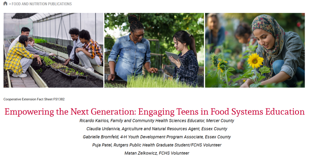 We’re excited to share a newly published Rutgers Cooperative Extension fact sheet co-authored by Ricardo Kairios and created in collaboration across Family and Community Health Sciences (FCHS), Agriculture and Natural Resources (ANR), and 4 H Youth Development. Empowering the Next Generation: Engaging Teens in Food Systems Education highlights why involving teens in food systems learning is essential for building healthier communities, supporting local food environments, and preparing young people to become future leaders in sustainability and social change.